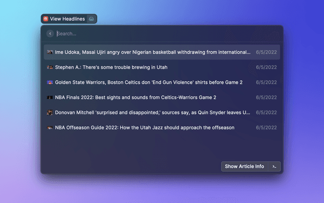 Spotify's most common features, now at your fingertips. Search for music and podcasts, browse your library, and control the playback. Glance at what's currently playing directly from the menu bar.
