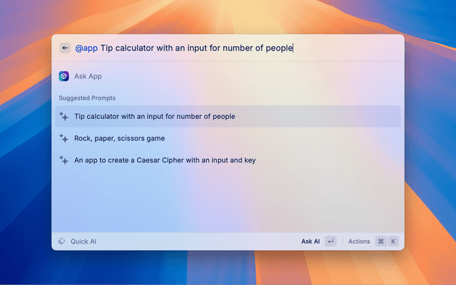 Allow Raycast AI to create HTML apps. They're stored in the extension support directory, but you can access them at any time with the List Apps command to open or delete them.