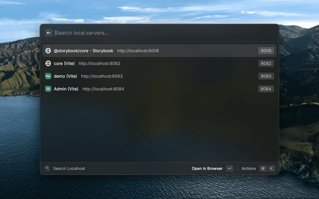 A powerful Raycast extension that helps you discover and manage all running Node.js development servers on your localhost.
