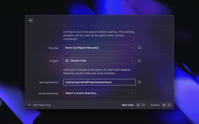 Connect to AI agents via Agent Client Protocol for coding assistance directly from Raycast.