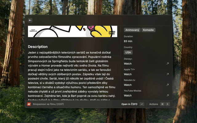 • Color Ratings: See ČSFD's color rating system directly in Raycast.
