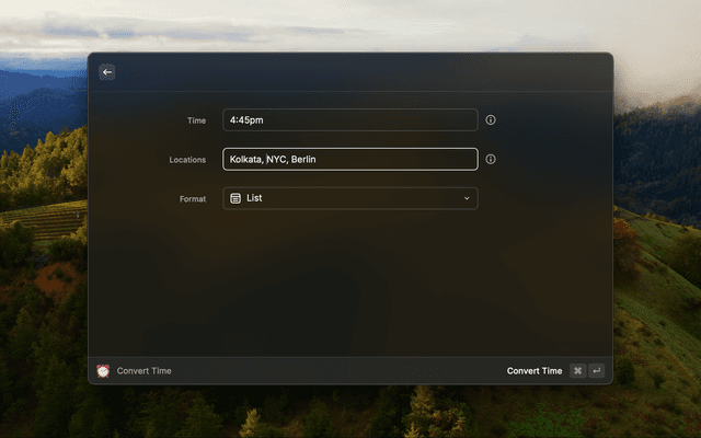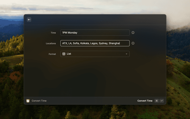 A powerful time zone converter that supports city names, aliases, and flexible time formats.