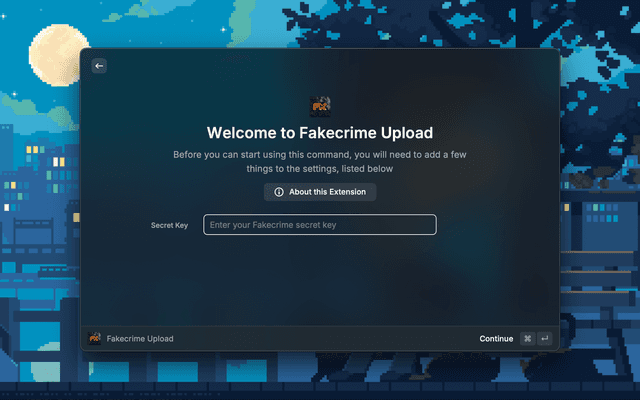 Upload an image to the Fakecrime servers and get the URL back. You can find your secret key in https://fakecrime.bio/imagehost under "Secret".