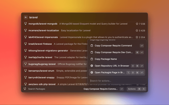 Easy access to Composer Packagist from raycast