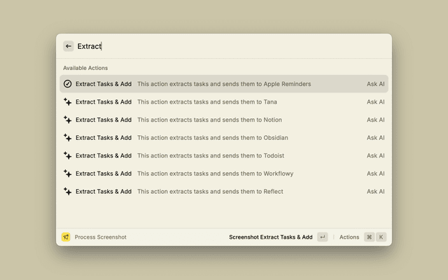 A Raycast extension to trigger Inbox AI actions directly from Raycast. Process text, audio, and screenshots with AI using your predefined actions.