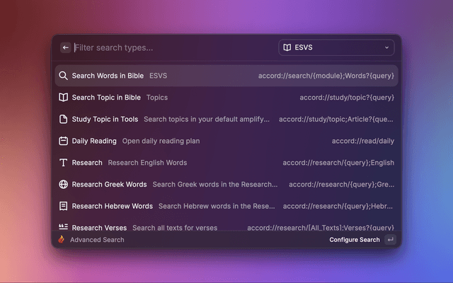A Raycast extension that interfaces with Accordance Bible Software to retrieve and display scripture verses.
