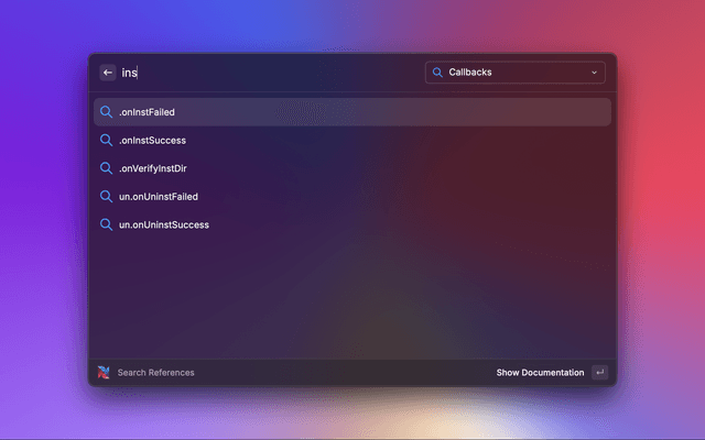 Quickly search through the documentation for Nullsoft Scriptable Install System (NSIS).