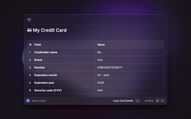 🔎   Search your vault   📋   Copy and paste any field   🔑   Generate passwords and TOTP codes   ⭐   Mark items as favorites