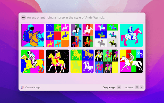 The OpenAI Generator extension uses the OpenAI Image Generation API — colloquially known as DALL·E 2 — and the Text Completion API to generate results from a text-based prompt.