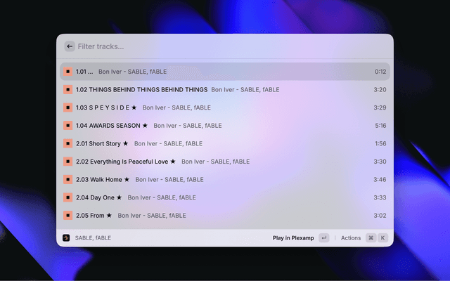• Inspect the active Plexamp queue and use transport controls from Raycast in Now Playing.