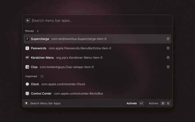 Interact with Bartender and menu bar icon apps