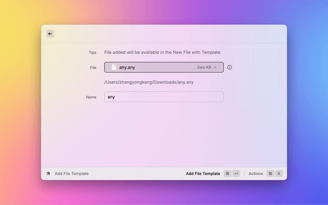 • When use the Add File Template command, the extension will automatically detect the selected file in the front-most Finder window. How to get the file path automatically?