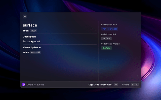 This Raycast extension allows users to interact with their Figma designs by fetching and displaying variable collections from a Figma file. Users can view details of each variable within a collection, including mode-specific values and code syntax.