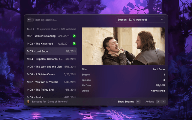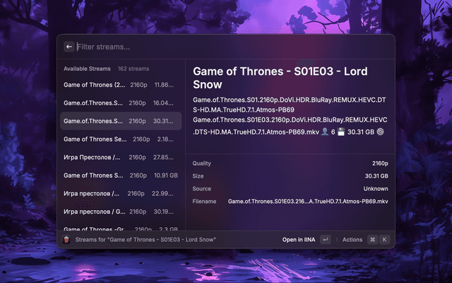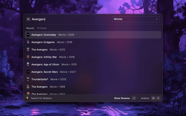 A Raycast extension that uses the Stremio API to search for movies and TV shows and stream them to local media players using Stremio addons. IINA is highly recommended for macOS users.