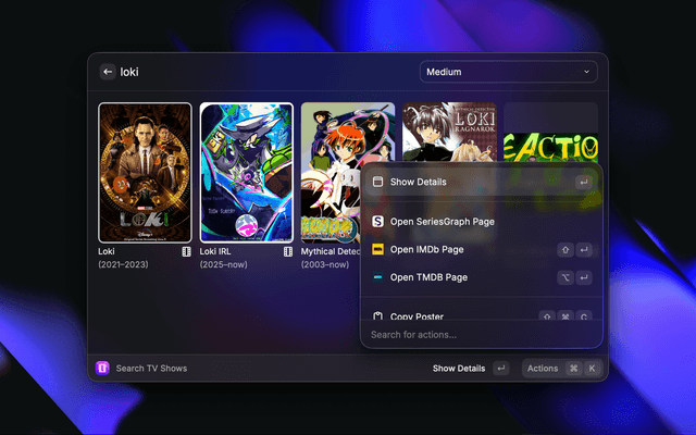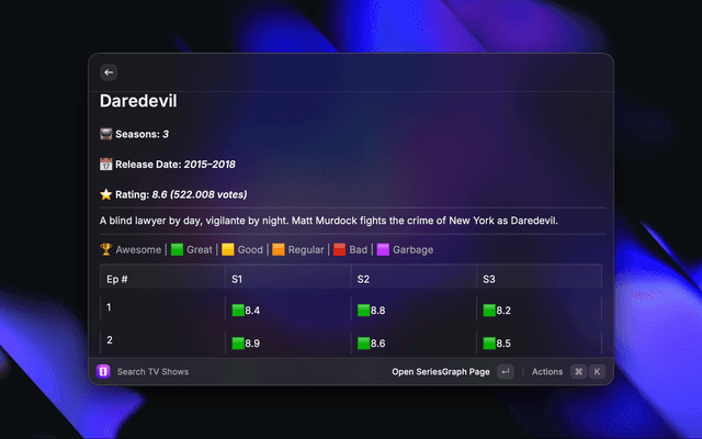 Search for TV show ratings and get individual episode ratings, straight from Raycast