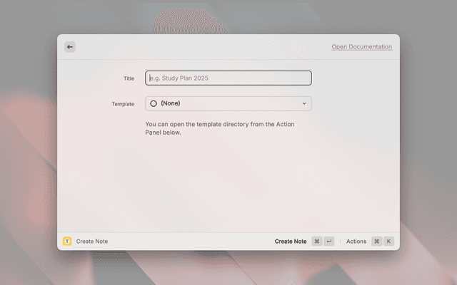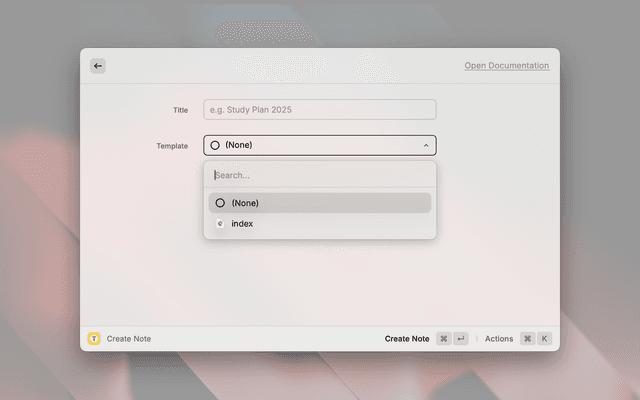 Choose from your own markdown templates when creating a new note. Helps you standardize structure and save time.