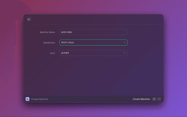 orbctl (which this extension uses) prompts the user for a password during machine creation. We can't 'answer' the prompt via the raycast API. Use orbctl or orb cli if you need to set a username with password when creating a machine. Example: orbctl create -u <user> -p <distro> <machine-name>.