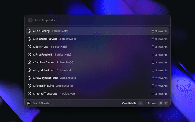 Search QuestsBrowse quests with objectives and rewards
