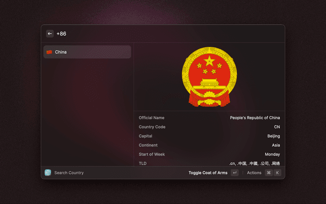 Quickly lookup country data by querying local copy of restcountries.com.