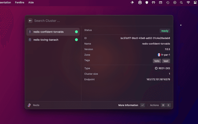 Raycast extension to search containers, database, instances or Redis clusters, to perform actions, and more to come.