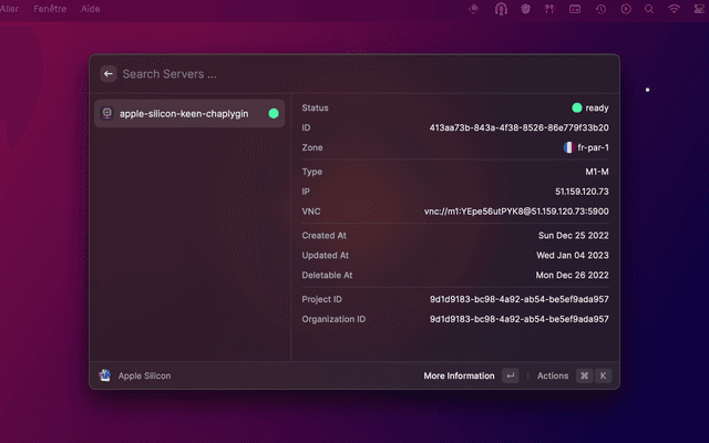 • Open a Scaleway command in Raycast and enter your Access Key and Secret Key