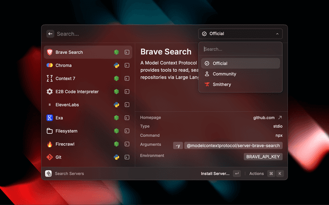 This extension is a meta registry for MCP servers. It is used to discover and install MCP servers. You can install servers in Raycast but also other clients that support MCP such as Claude or Cursor.