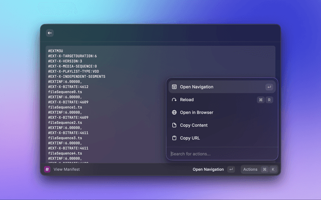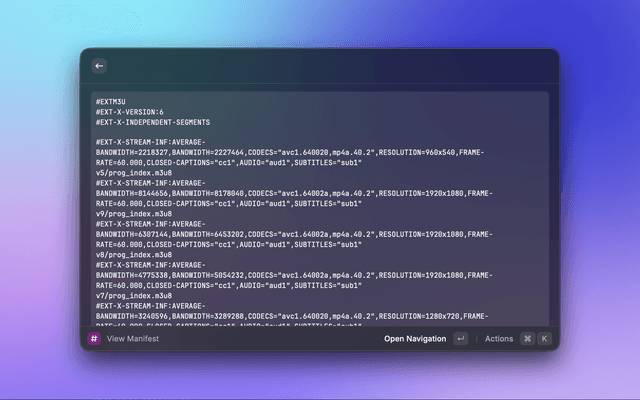 A Raycast extension for viewing and navigating HLS/DASH manifest files with keyboard navigation.