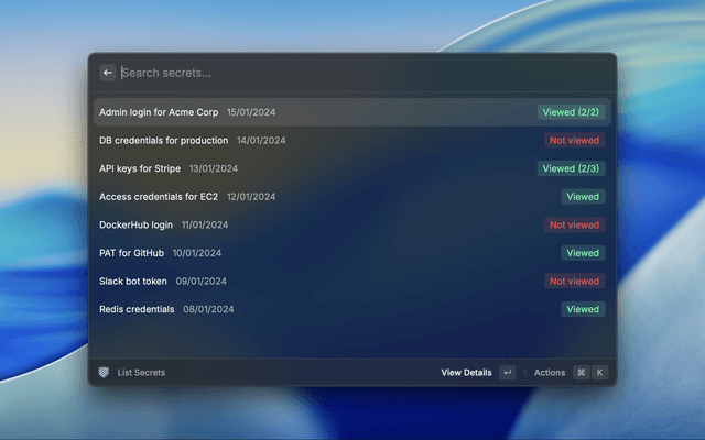 - ๐ Quick Creation - Create secrets directly from Raycast search with arguments