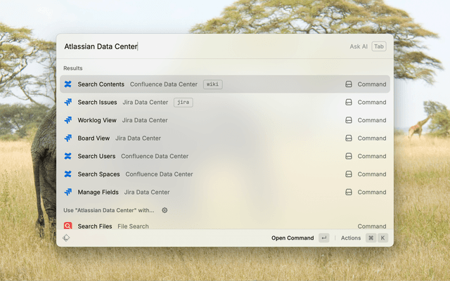 A Raycast extension for self-hosted Atlassian products to search and manage Confluence contents and Jira issues, with CQL/JQL syntax support.