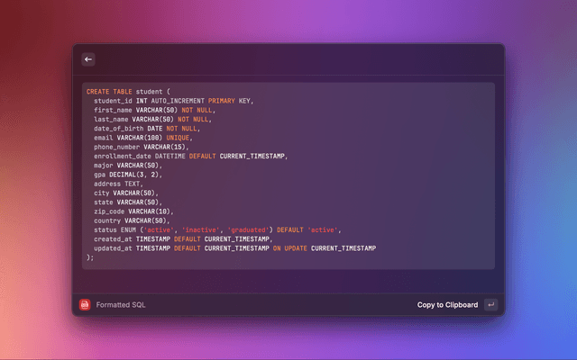 This extension is used to format SQL clause in Raycast created by @tonngw