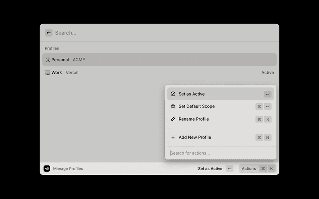 • Manage Profiles: Add, switch, rename, and delete different v0 API key profiles, allowing you to seamlessly manage access to various v0 accounts or scopes.