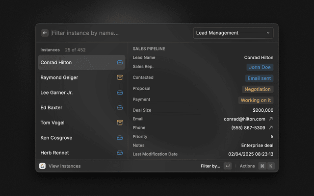 • Archive/Unarchive Instance: Toggle the archive state of an instance