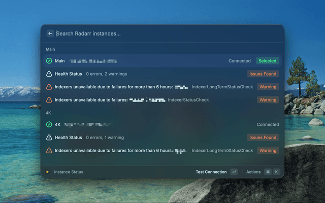 • Instance Status - Monitor connection status of multiple Radarr instances