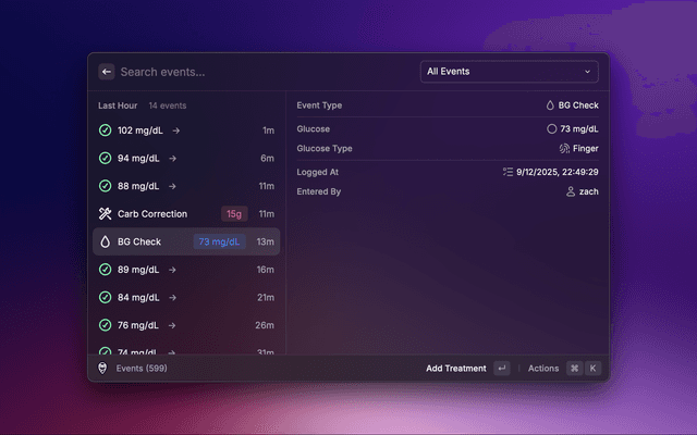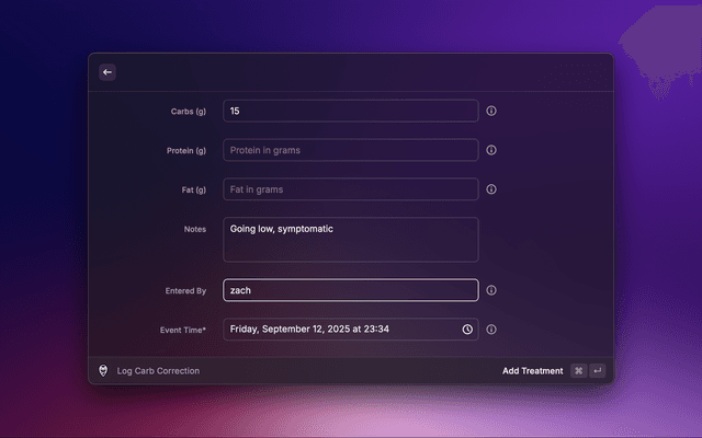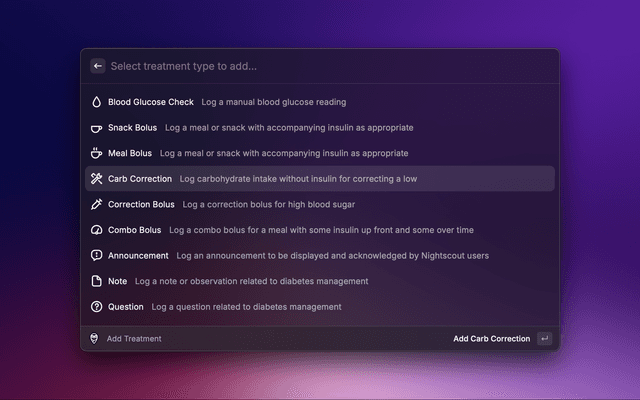 I am newly diagnosed T1D, and I don't have access to many different Nightscout setups or devices, nor do I have a full understanding of my condition yet and how it relates to the use of Nightscout. If you have experience with more devices and treatment types, please feel free to open issues or PRs to improve the extension for everyone (please reach out too!).